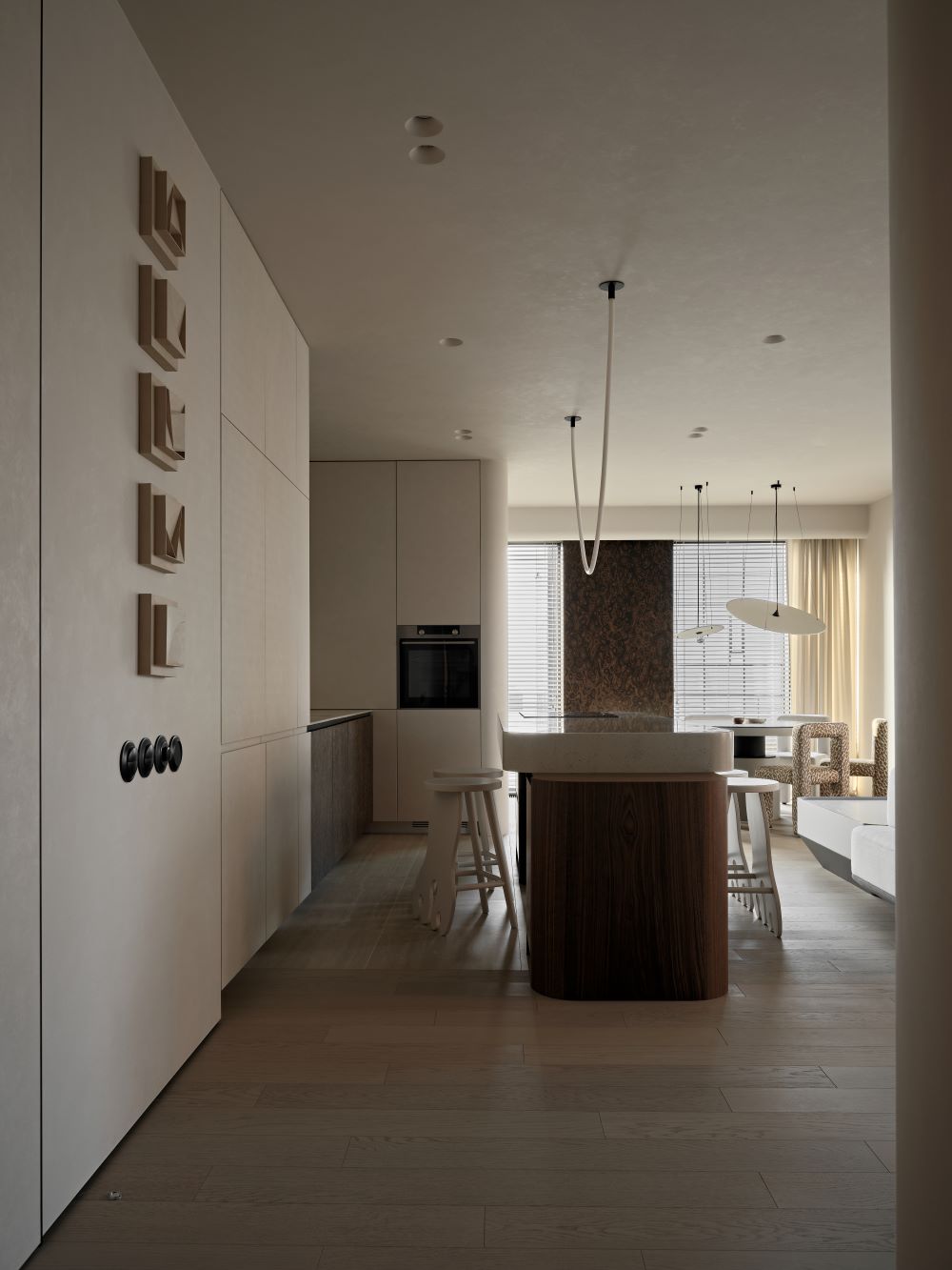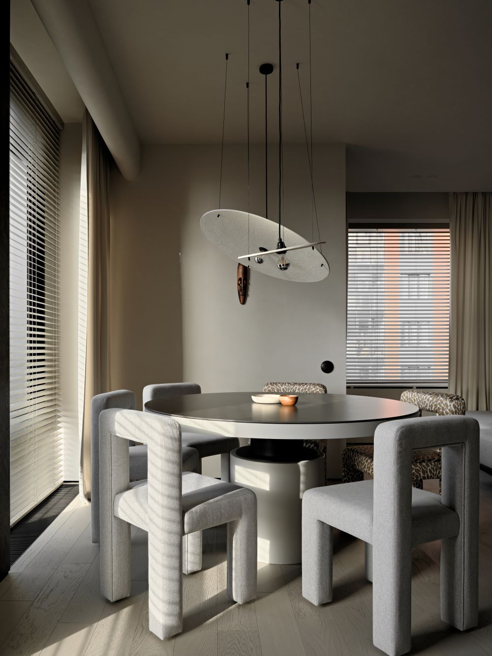 Интерьер проекта CHICAGO — это тёплая и спокойная интерпретация Japandi с африканскими акцентами.