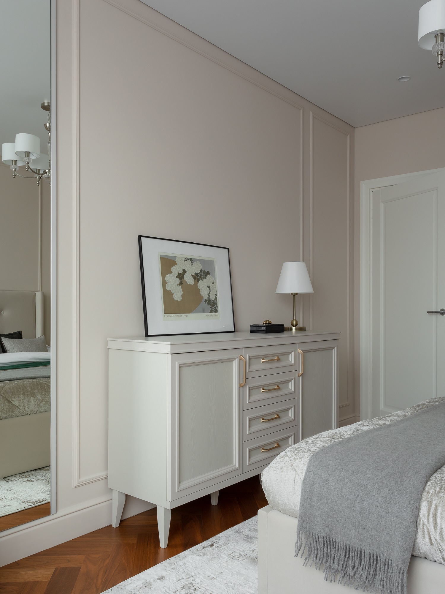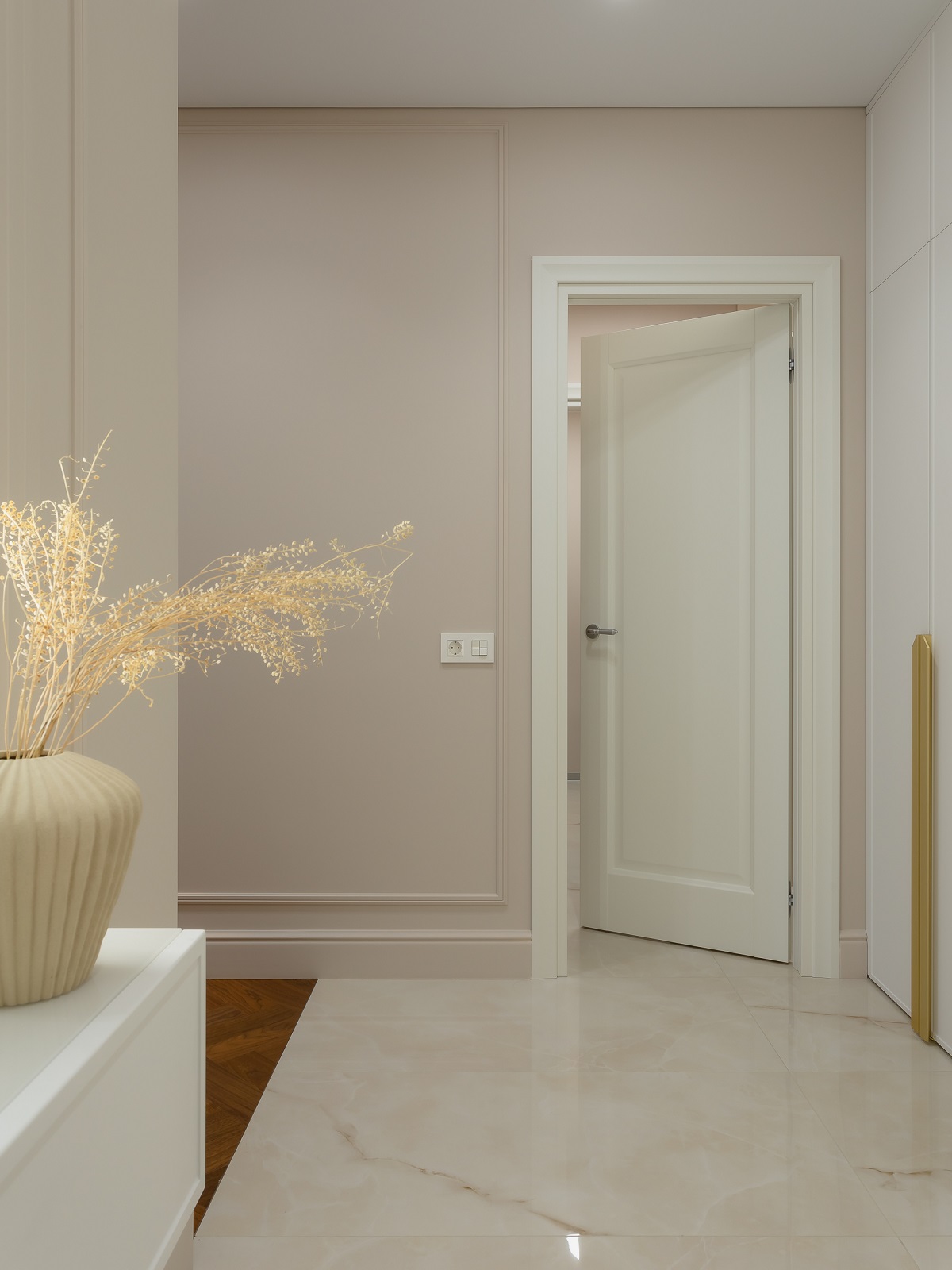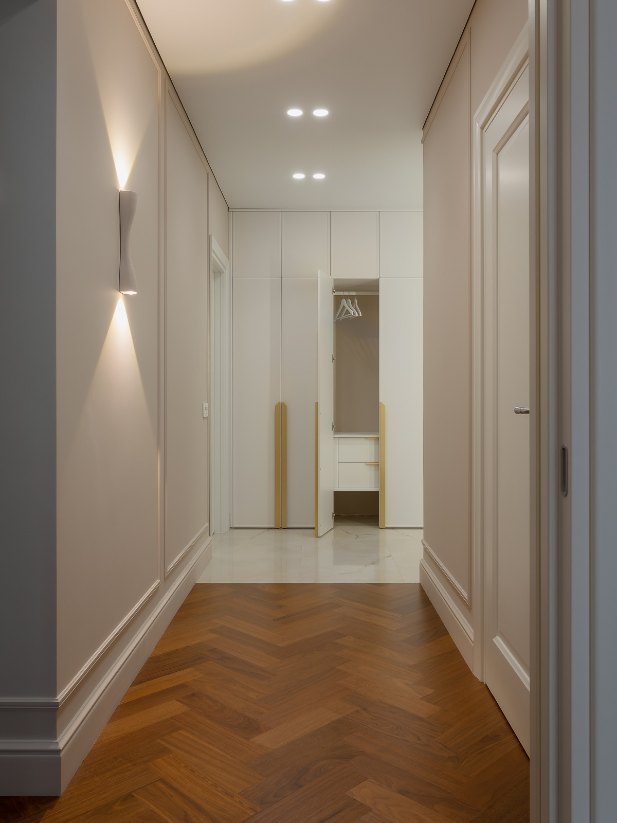 В целом хотелось передать атмосферу хорошего пятизвездочного люкса, но такого, в котором хочется остаться жить. И для этого есть все условия: наполненная техникой кухня, стиральная и сушильная машины в прачечной, оборудованная гардеробная и огромные вместительные шкафы.
