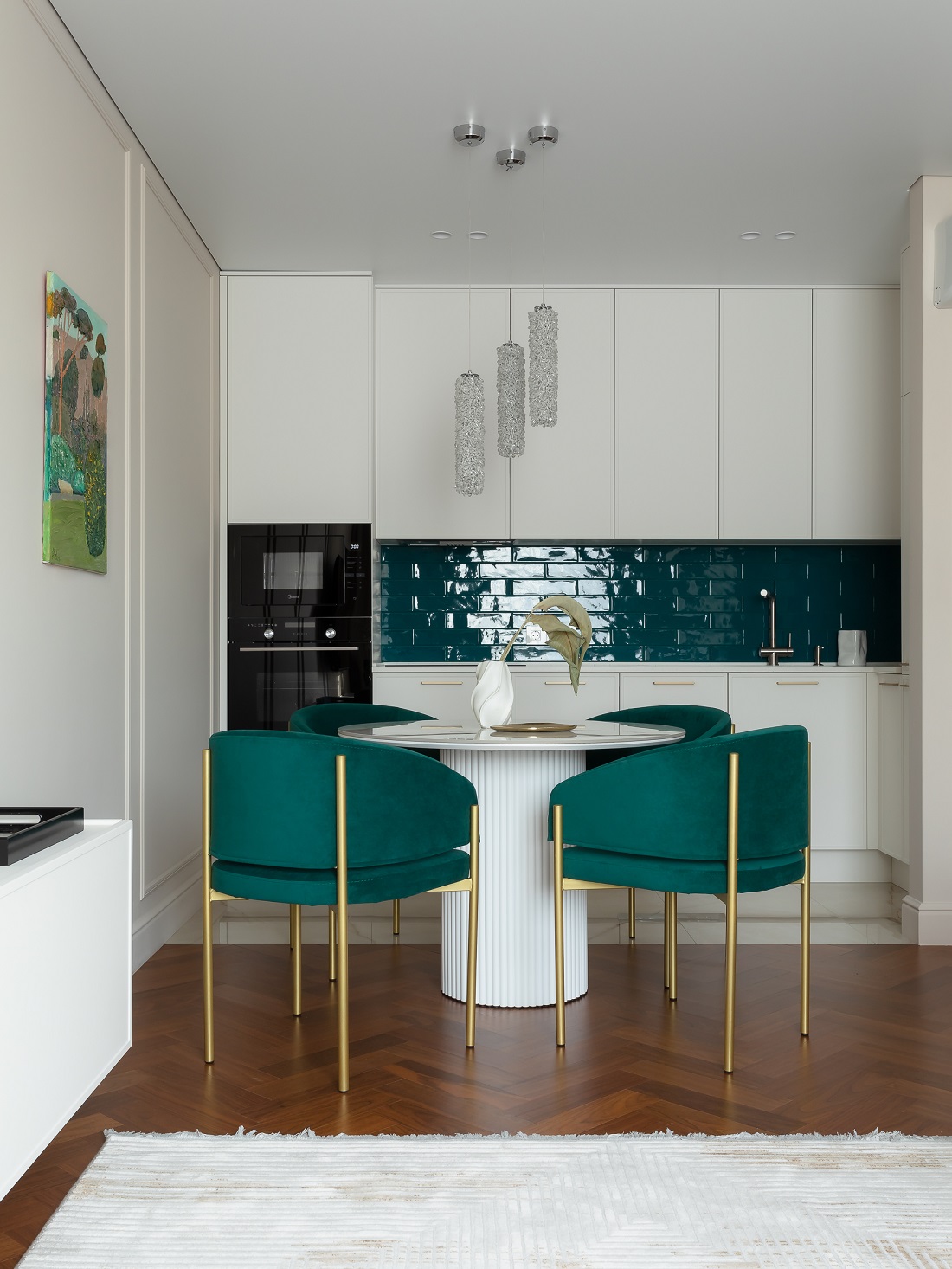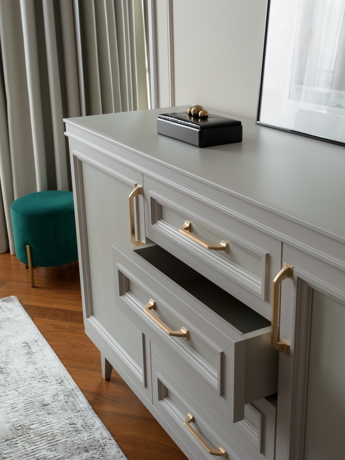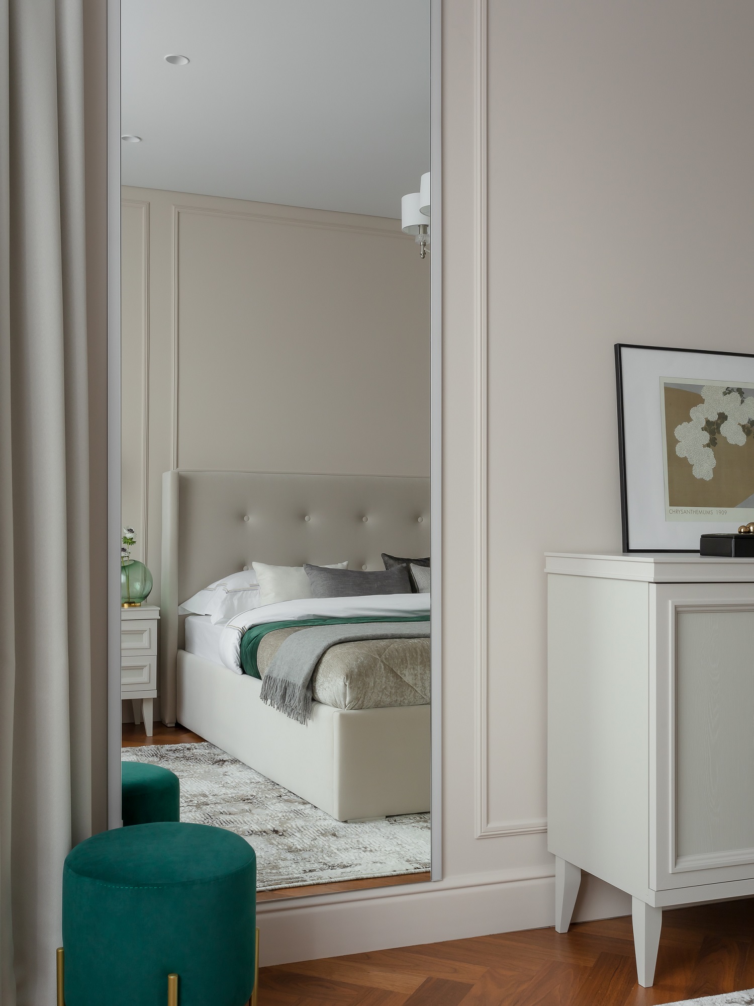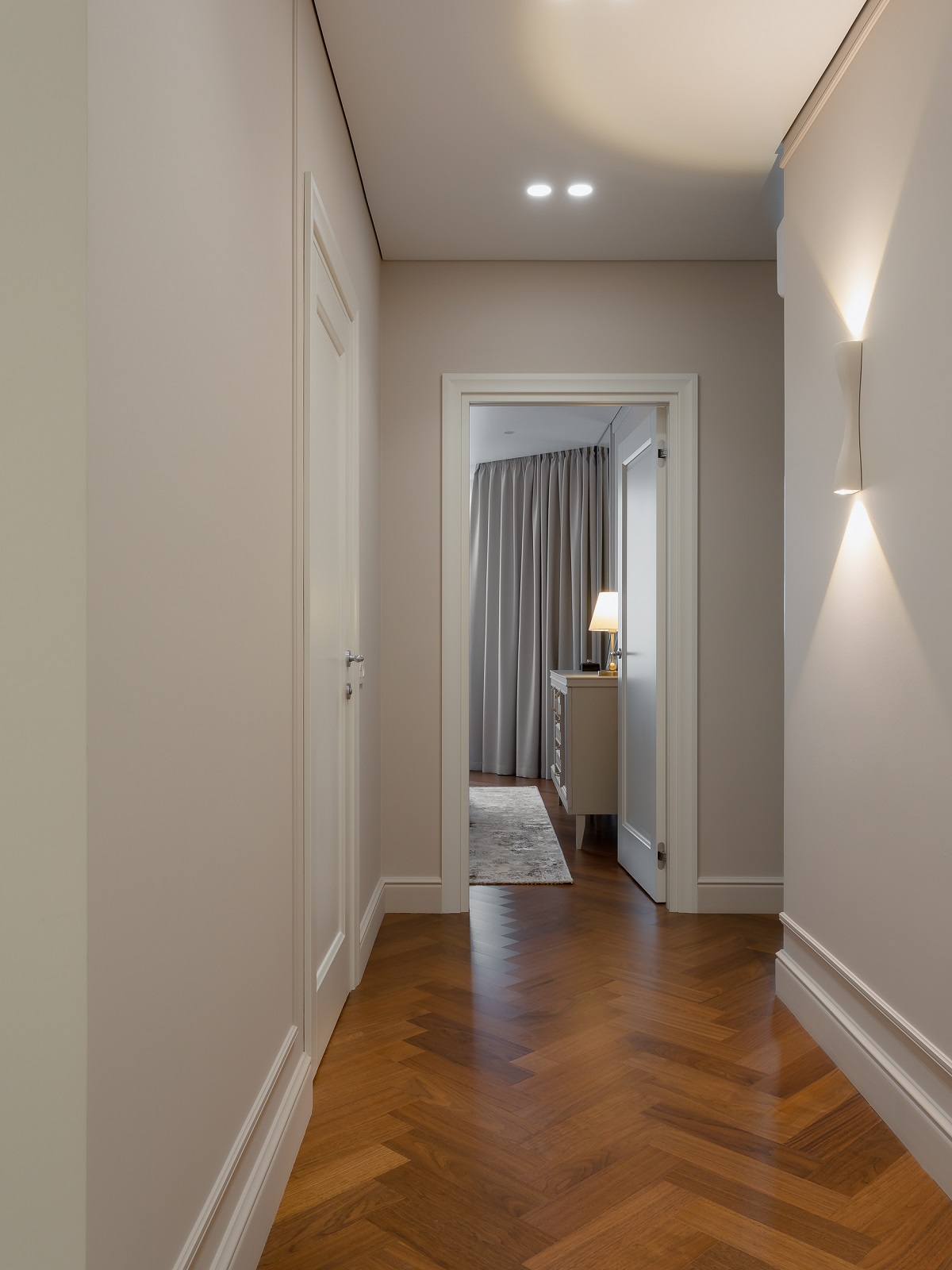 В целом хотелось передать атмосферу хорошего пятизвездочного люкса, но такого, в котором хочется остаться жить. И для этого есть все условия: наполненная техникой кухня, стиральная и сушильная машины в прачечной, оборудованная гардеробная и огромные вместительные шкафы.